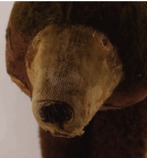 Pfoten- und Tatzenfilz von „Teddy-Bär“ sind zerschlissen/aufgerissen und werden durch neuen Filz ergänzt. Der neue Filz wir nicht auf den alten Filz aufgenäht. Der neue Filz wird, wie im Original, mit dem Plüsch rechts auf rechts genäht.