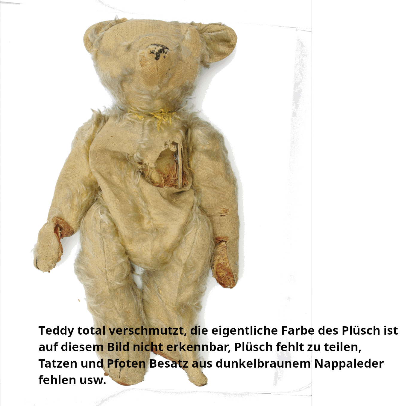 Pfoten- und Tatzenfilz von „Teddy-Bär“ sind zerschlissen/aufgerissen und werden durch neuen Filz ergänzt. Der neue Filz wir nicht auf den alten Filz aufgenäht. Der neue Filz wird, wie im Original, mit dem Plüsch rechts auf rechts genäht.
