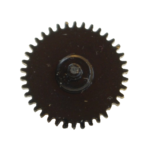 An dem Getriebe des Federwerkes ist die Antriebswelle gebrochen, und an dem Zahnrad ein Zahn ausgebrochen.