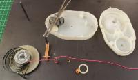 Zerlegtes Sprechwerk mit Zugschnur auf dem Prüfstand