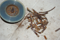 Die Aufzugsfeder vom Rost vollständig zerfressen